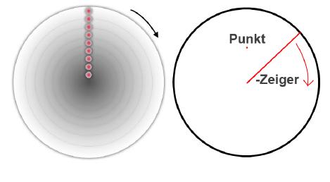 Sonar: Das Sonar kombiniert die Schwierigkeiten beider zuvor präsentierten Muster. Ein von der Position gleichbleibender Punkt kombiniert mit einem sich drehenden Zeiger stellt die zu zeigende Animation dar.